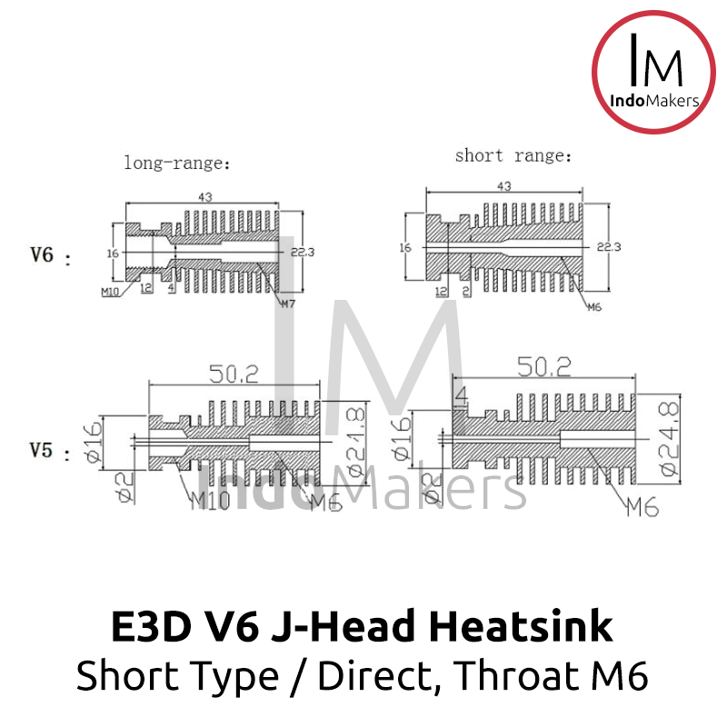 V6 JHead Heatsink Short Type / Direct Material Aluminium 3D Printer